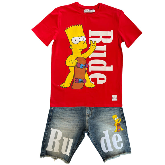 Freeze Max Men's Bart Simpson Rude Tee with Optional Denim Shorts