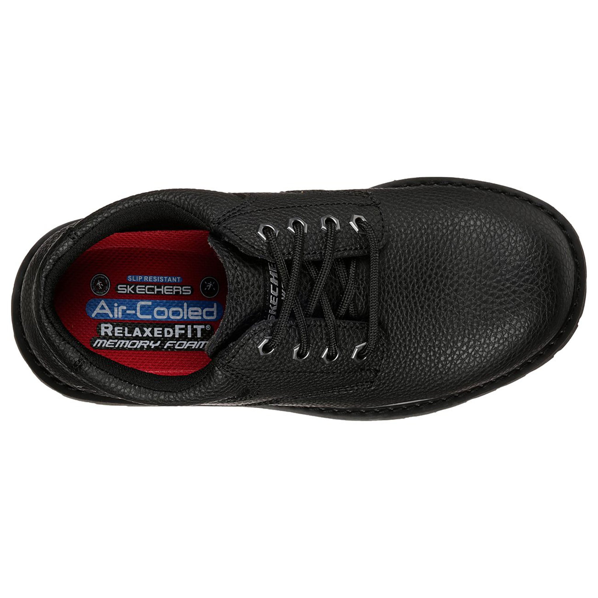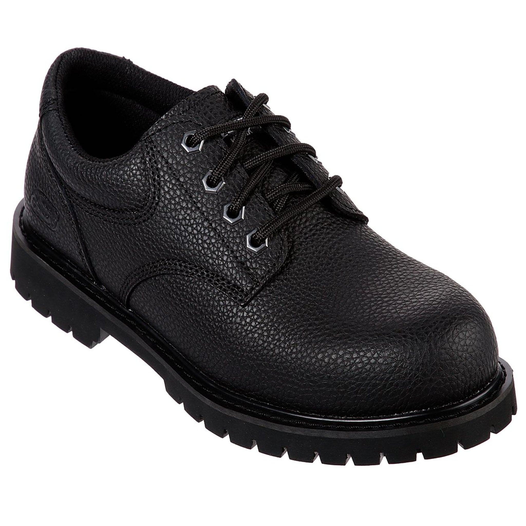 A versatile good look keeps you comfortable and surefooted all day in the SKECHERS Work Slip Resistant®: Cottonwood - Jaken SR shoe. Full grain embossed leather upper in a lace up dress casual slip resistant work oxford with stitching accents. Memory Foam insole.